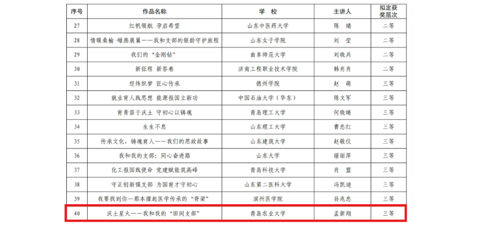 12月4日,山东省委教育工委公布了2025年度全省高校“党课开讲啦”“我和我的支部”获奖作品名单,70net永乐高第六党支部作品《沃土星火——我和我的“田间支部”》,凭借其鲜明的党建特色、生动的实践叙事和扎根一线的担当,在“我和我的支部”评选中荣获三等奖。