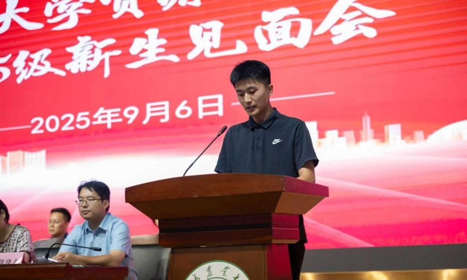 农业资源与环境专业2201班段舒畅作为高年级学生代表发言,他结合自身成长经历分享了心得体会。2025级全体学生进行了入学宣誓,铮铮誓言,回荡于心,2025级全体新生将以饱满的热情、无悔的付出,继续前进,开启美好的大学生活新篇章。