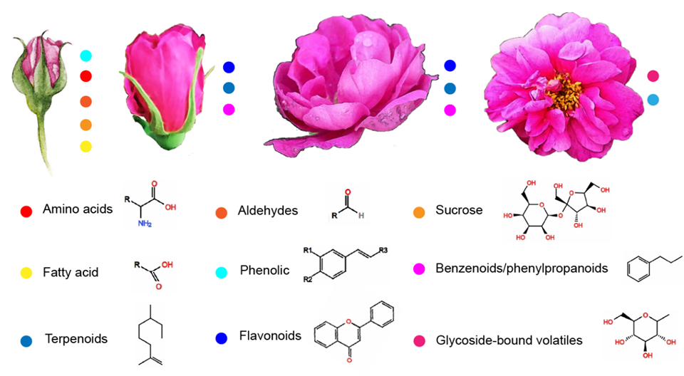 图1 玫瑰花瓣不同发育时期的次生代谢物