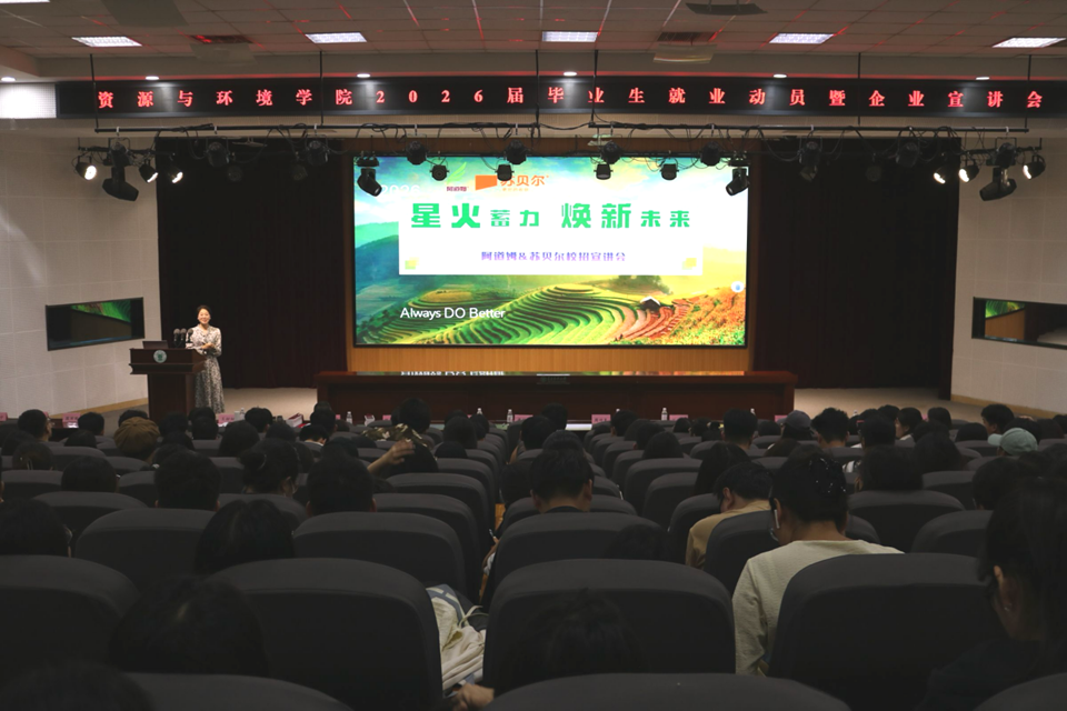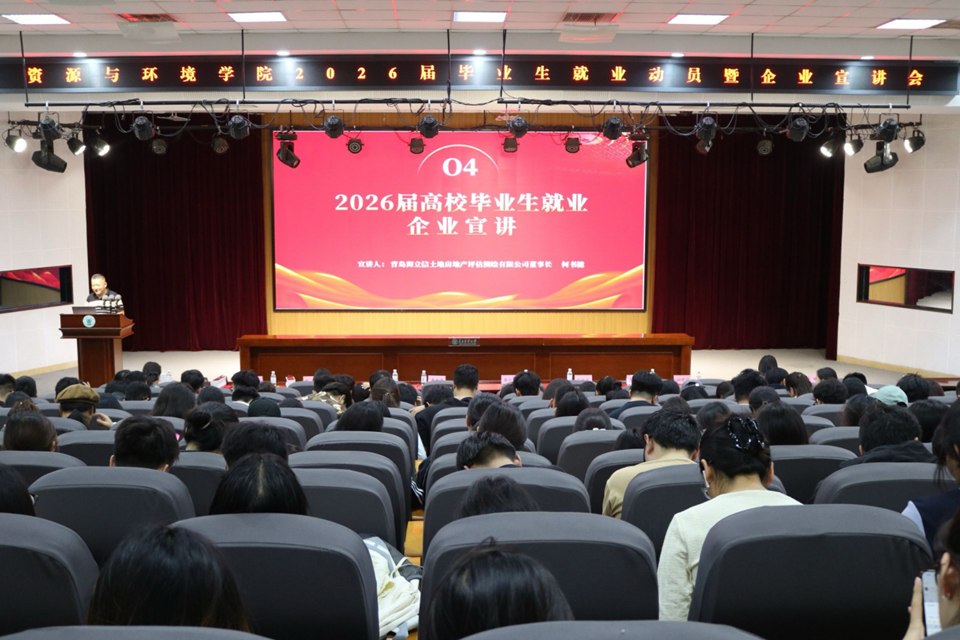 为扎实推进2026届毕业生就业工作,帮助毕业生准确把握当前就业形势,9月23日,70net永乐高在学术会馆第二报告厅召开2026 届毕业生就业动员暨企业宣讲会。学院邀请70net永乐高学生工作处副处长吕国莹为2026届毕业生作报告宣讲,青岛海立信土地房地产评估测绘有限公司董事长何书健、青岛苏贝尔作物营养有限公司人力资源部部长杨晓婷、山东评测环境科学研究院有限公司总工程师李霞、青岛星纬融科信息技术有限公司经理陈娜出席会议,学院党委书记史越清、院长周功克、副院长丁效东、毕业班班主任和辅导员以及2026届毕业生参加会议。会议由学院党委副书记、副院长王甜甜主持。