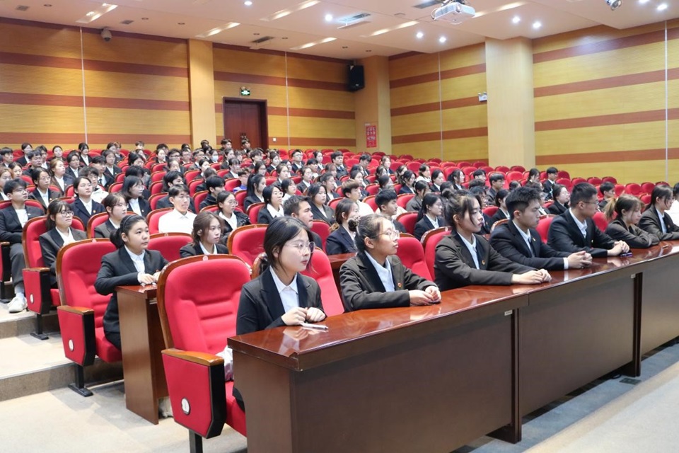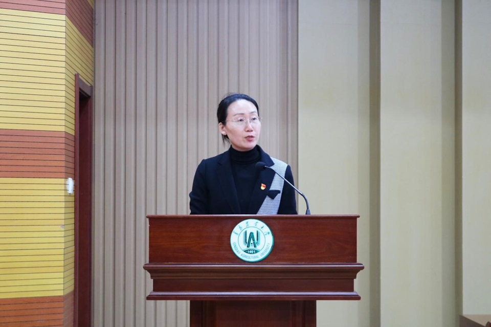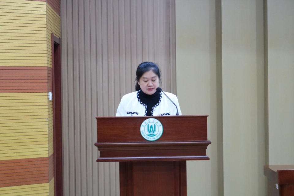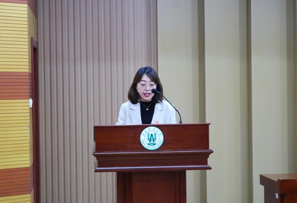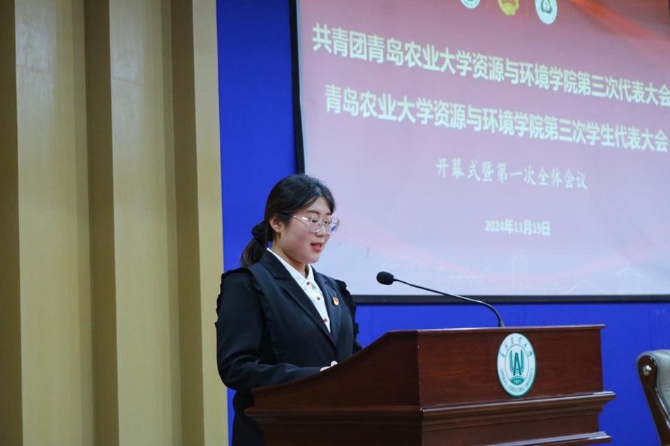 王甜甜发表讲话,她表示,自第二次团代会召开以来,学院各级团组织在院党委和上级团组织的领导下,深入学习贯彻习近平新时代中国特色社会主义思想,紧密围绕学院中心工作,团结带领全院团员青年开展了富有特色的共青团工作。她代表学院党委对学院共青团工作提出几点希望和要求:一是要强化思想引领,坚定理想信念,不断提升团组织的思想引领力和组织力;二是要夯实工作基础,凝聚青年共识,切实增强团组织的服务力和大局贡献度;三是要练就过硬本领,涵养吃苦精神,做堪当民族复兴重任的时代新人;四是要激昂奋进旋律,踔厉奋发,勇毅前行,争做新时代的奋斗者。
