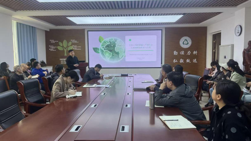 会上,徐良作了题为《习近平生态文明思想融入环境生态工程课程的探索与实践》的分享,他结合时代要求与育人使命,系统阐释了将习近平生态文明思想融入专业教育的重要意义,围绕核心要义、融合框架、教学创新、成效展望等方面展开交流。结合一线教学实践,徐良提出多维度课程思政融合矩阵建设思路,推动思政元素与专业基础课、核心专业课、前沿特色课精准对接、有机融合。针对传统教学存在的问题,他重点介绍了“四维驱动”翻转课堂创新模式,通过主题驱动、任务驱动、形式驱动、评价驱动,构建全链条教学闭环。他强调环境生态工程课程思政建设要引导学生在夯实专业能力的同时树立正确生态价值观,推动生态文明教育走深走实。
