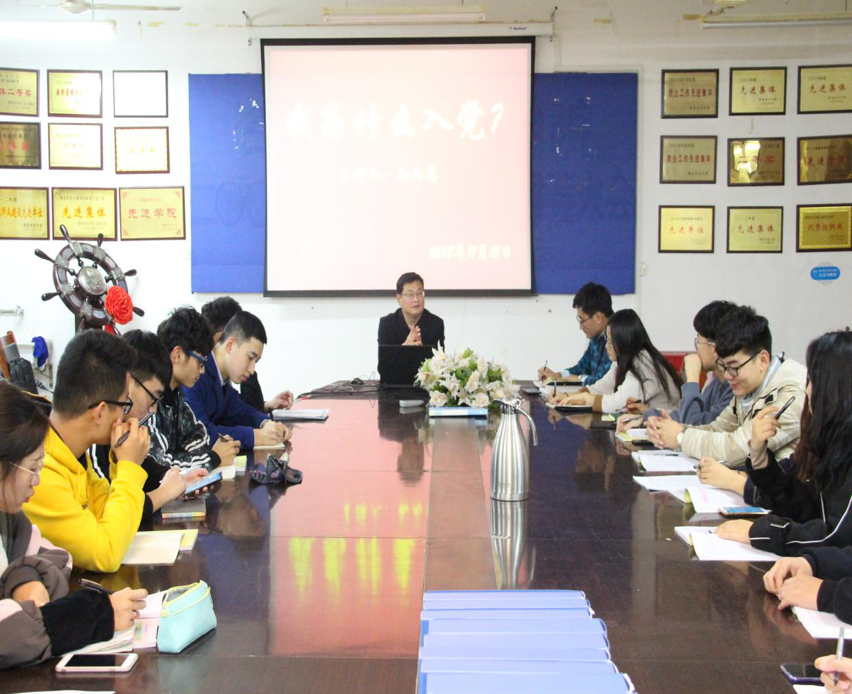 11月15日,70net永乐高党委书记孙丙高在化学楼讲“我为什么入党”主题党课,第二十三期入党积极分子和党员发展对象参加。