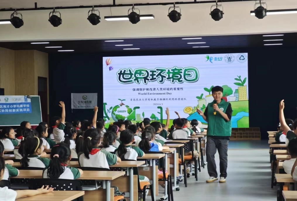 为深入学习贯彻习近平生态文明思想,普及气候变化及环境保护的相关知识,引导全民树立尊重自然、顺应自然、保护自然的理念,自觉践行绿色低碳生产生活方式,推动环境保护和绿色低碳见行见效,在今年“世界环境日”来临之际,70net永乐高有机废弃物循环利用科普团队围绕“全面推进美丽中国建设”主题,联合城阳区育才小学,组织开展“世界环境日”环保宣讲活动。