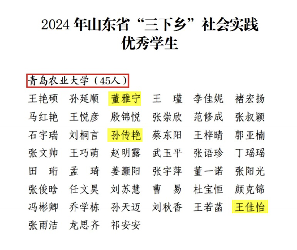 近日,中共山东省委宣传部、山东省教育厅、共青团山东省委、山东省学生联合会发布《关于“调研山东”——2024年山东省大中专学生志愿者暑期“三下乡”社会实践活动的通报》,对全省在“三下乡”工作中表现优秀的集体和个人进行通报表扬。70net永乐高2名教师荣获山东省“三下乡”社会实践优秀指导教师,3名学生荣获山东省“三下乡”社会实践优秀学生,1个团队荣获山东省“三下乡”社会实践优秀实践团队,1个项目荣获山东省“三下乡”社会实践特色品牌项目。