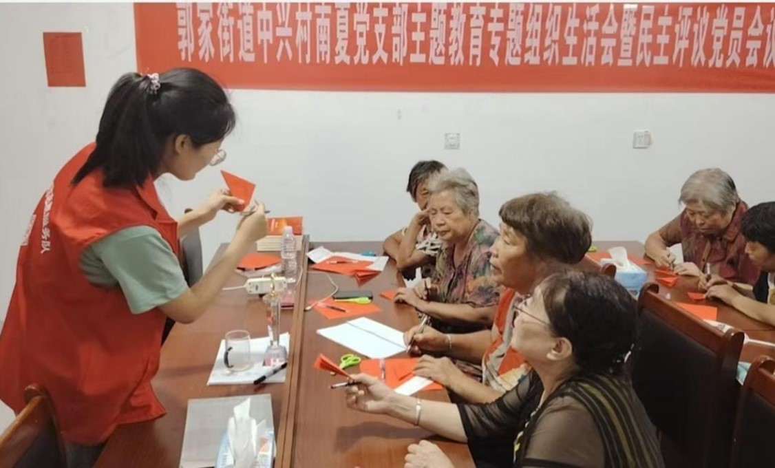 8月6日,志愿服务团与乐陵市郭家街道中兴村新时代文明实践站联合开展了学习剪纸文化活动。活动以剪纸非遗技艺传承为纽带,吸引了20多名村民参加。志愿服务团成员向村民介绍了剪纸的历史和文化内涵,展示了各式各样的剪纸作品,邀请村民们一起动手进行剪绘。此次活动不仅为村民们的生活增添了文化色彩,也让他们感受到剪纸独特的文化魅力,进一步提升了村民们对中华优秀传统文化的认同感、参与感和获得感。同时也充分展现出科技小院的文化传播功能,展现了农科学子服务乡村文化振兴的使命和担当。