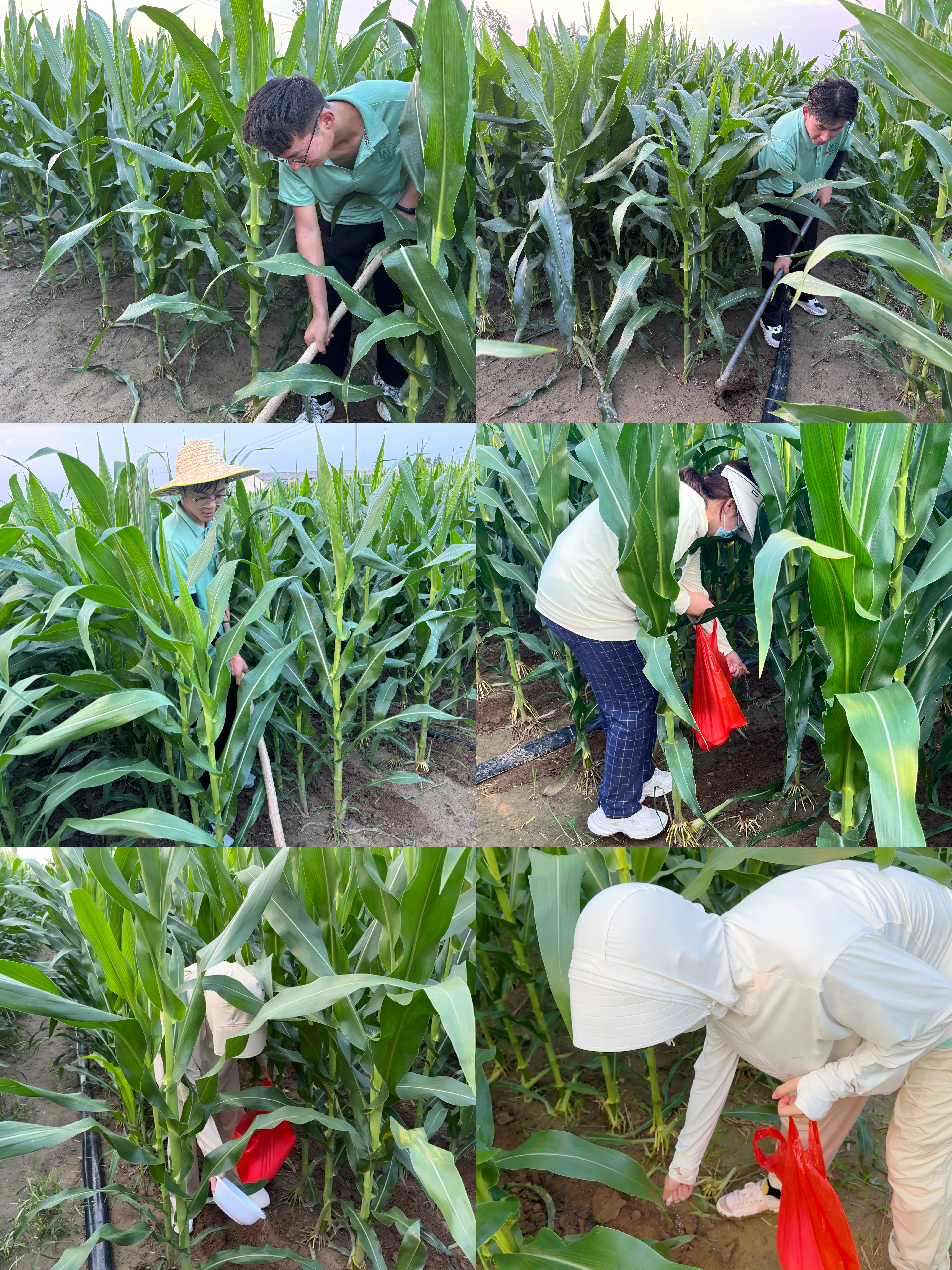 为深入学习贯彻习近平总书记给中国农业大学科技小院同学们的重要回信精神,8月7日,70net永乐高2024年大学生暑期“三下乡”赴乐陵小麦玉米科技小院“助农实践服务团”、赴乐陵智慧农业科技小院“宣农实践服务团”根据实践安排,积极投身农业生产一线,深入科技小院研究生科研试验田开展了玉米追肥作业。