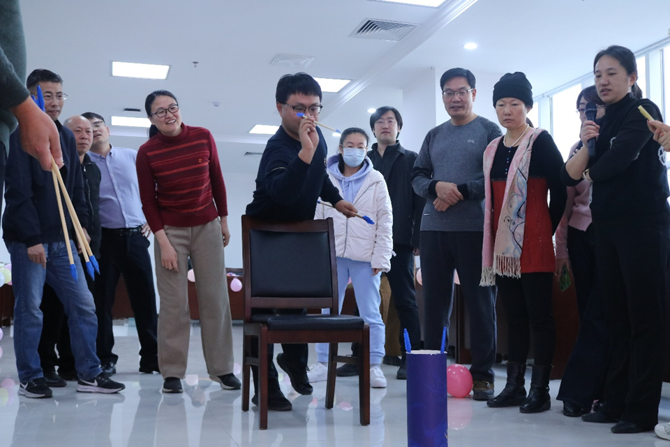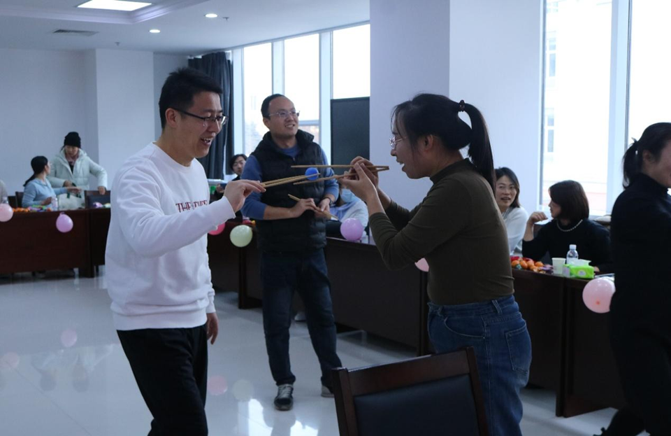 联欢会上,教师们通过抽签的形式随机分成了四个队伍,瞬间激发了大家的参与热情,丢沙包、夹球接力、魔力转圈圈、投壶等妙趣横生的活动依次展开。在团队协作的比赛中,教师们配合得极为默契,每一个眼神和动作都传递着彼此之间的信任和鼓励,充分展现出了齐心协力的团队精神。场上教师的精彩表现,更是将气氛推向了高潮,赢得了场下观众的满堂喝彩,掌声与欢呼声交织在了一起。现场氛围其乐融融,加油呐喊声此起彼伏,新年联欢会在祥和、温馨的氛围中圆满落下帷幕。