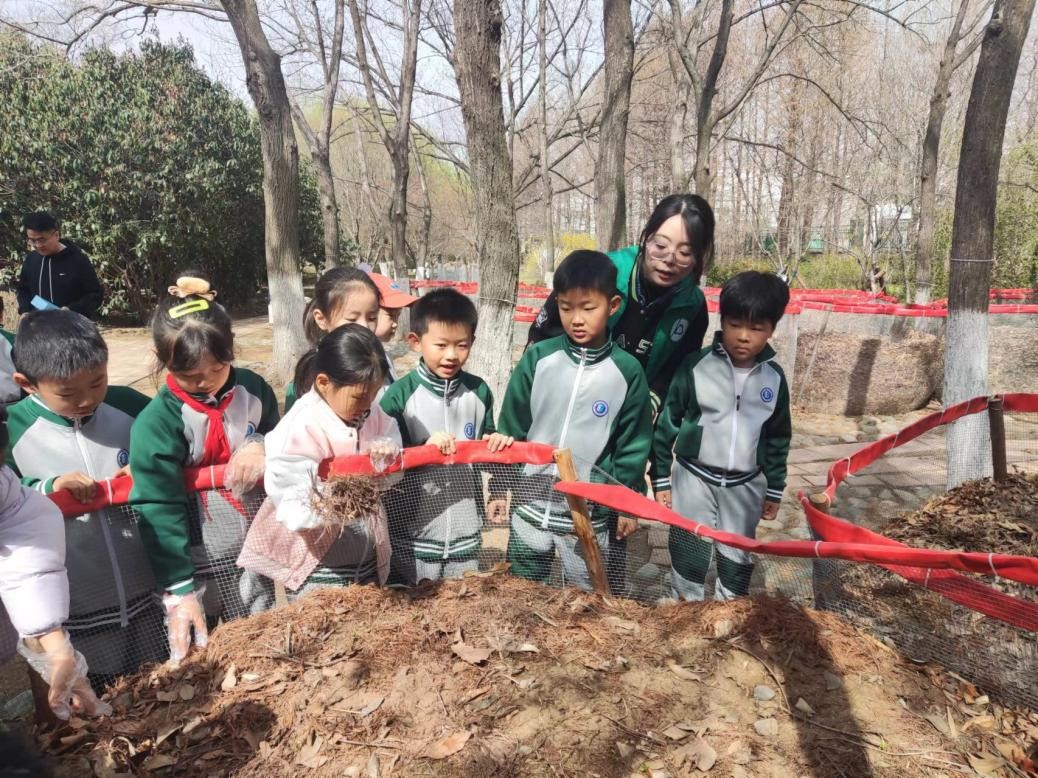 随后,大家一同参观了垃圾分类低碳循环示范教育基地、堆肥秘密基地和落叶堆肥区。在学生讲师的鼓励下,小朋友们根据在宣讲中学到的厨余堆肥知识,把自己准备的厨余垃圾放入堆肥箱,再向垃圾上方覆盖木屑,成功建立起一个“汉堡包”式厨余堆肥箱。