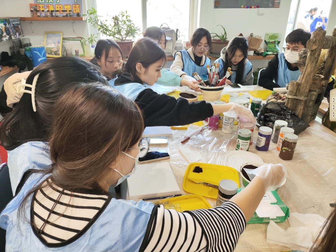 下午,学院2023级的学生们也积极参与到“春日环保行”活动中。在老师的指导下,学生们学习了松土与施肥的专业技巧,分工协作将自制堆肥均匀施入土壤,有效提升了土壤肥力,为之后树苗的生长创造了良好的生存条件。劳动过后,大家一起进入室内进行环保手工创作,学生们充分发挥创意,精心制作了各具特色的咖啡豆肌理画。同时,在学生志愿者的热心协助下,小朋友们利用咖啡渣和颜料,在画布上创作出了一幅幅生动有趣的环保主题画作,进一步激发了小朋友参与环境保护的积极性和主动性。