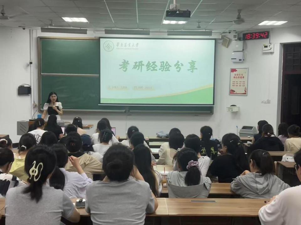 分享会上,9位优秀毕业生结合自身考研经历,从院校专业选择、公共课与专业课复习策略、复试技巧、备考心态调整等多个方面展开系统分享。优秀毕业生们分享道,合理规划与持续坚持是考研成功的关键,建议同学们根据自身学业基础和实际能力,科学合理地选择目标院校,同时要积极主动寻求学院老师的专业建议,以更高效的方式朝着目标稳步前行。此外,在保持高效学习节奏的同时也要注意身心调适,以积极平稳的状态应对备考挑战。