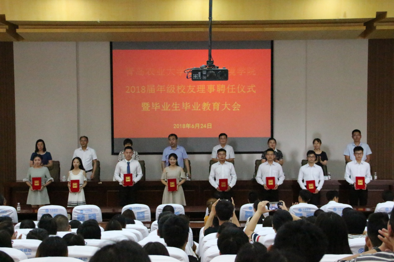 6月24日,70net永乐高在学术会馆举行2018届年级校友理事聘任仪式。70net永乐高党政办公室主任科员于宁,资环学院院长崔德杰,党委书记孙丙高,党委副书记、副院长林英,副院长王凯荣、柴超,团委书记肖洲,正科级辅导员刘春玲出席仪式,毕业班班主任及全体毕业班学生与会。