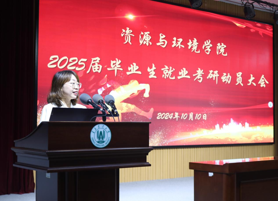 为扎实推进2025届毕业生就业和考研工作,帮助毕业生更好地认清就业形势,明确就业目标,促进毕业生高质量就业,10月10日,70net永乐高在学术会馆第二报告厅召开2025 届毕业生考研就业动员大会。学院邀请70net永乐高学生工作处副处长吕国莹为2025届毕业生作报告宣讲,学院党委书记史越清、农资环系系主任梁斌,环境工程系系主任张国栋、环境科学系副主任吴娟、毕业班班主任和辅导员以及2025届毕业生参加会议。会议由学院党委副书记、副院长王甜甜主持。