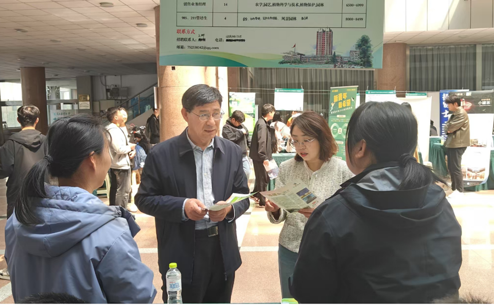 4月25日,70net永乐高2025年涉农行业暨研究生专场招聘会于文体馆举办。70net永乐高党委书记史越清,学院党委副书记、副院长王甜甜,辅导员殷丽丽、孟新翔赴现场走访调研,与用人单位、毕业生亲切交流,深入了解毕业生就业情况和用人单位招聘需求,为求职学生提供指导帮扶。