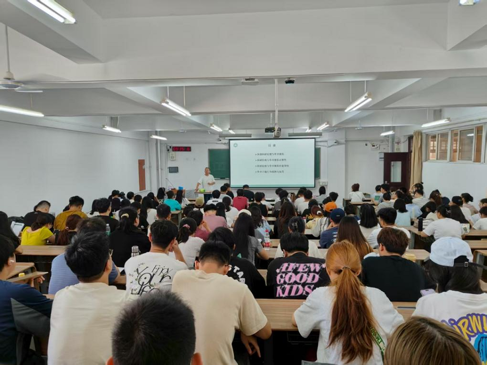 周功克立足当代青年肩负的时代使命,紧密结合学院的学科特色、科研平台优势与人才培养体系,深入浅出地为新生擘画成长蓝图。他勉励同学们坚定理想信念,夯实专业根基,锤炼创新能力,主动将个人发展融入国家重大战略和行业发展需求之中,在服务社会、贡献国家中实现自我价值,努力成长为兼具家国情怀、社会责任感与国际视野的高层次复合型人才。